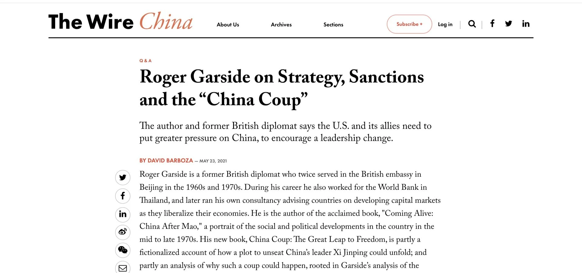 Interview with David Barboza, The Wire China May 23 2021.