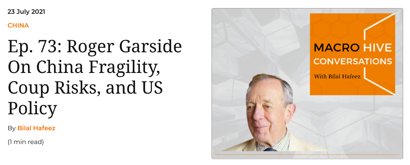 Macro Hive Conversations With Bilal Hafeez, Episode 73 July 23 2021, Roger Garside On China Fragility, Coup Risks, and US Policy